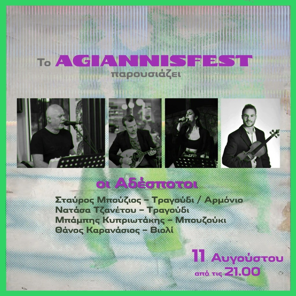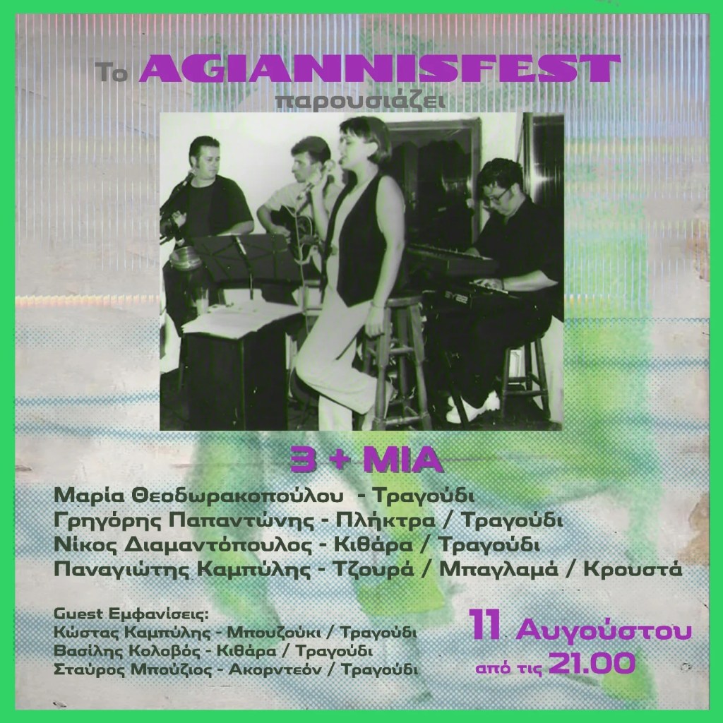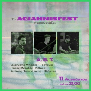 Η πρώτη μέρα του AgiannisFest, γεμάτη έντεχνη μουσική και αγαπημένα τραγούδια, ξεκινά με τρεις νέους καλλιτέχνες από την περιοχή, τους A.B.T.